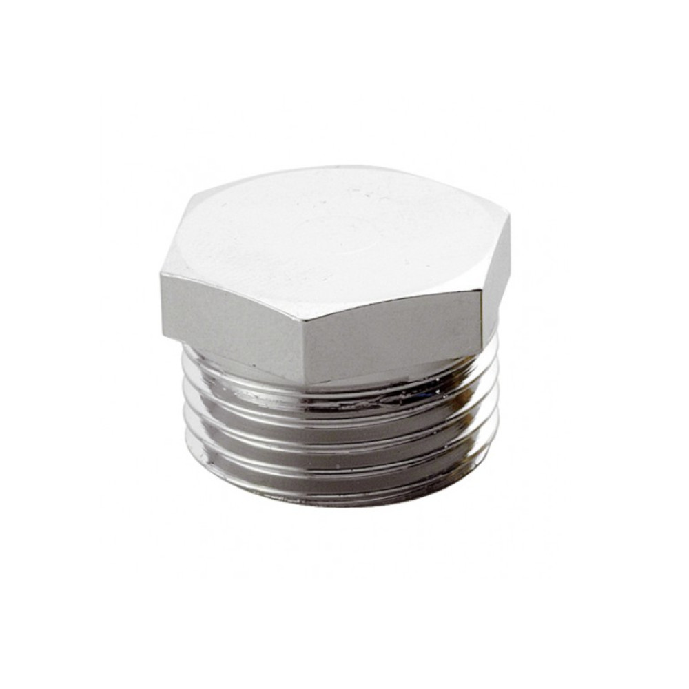 Заглушка хром для коллектора - латунное изделие с уплотнением. Имеет серебристый оттенок благодаря хромированной поверхности.