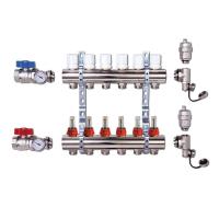 Корпус коллектора ViEiR производят из нержавеющей стали и максимально устойчив к агрессивным средам. Это значит что такая коллекторная группа подойдет для работы с антифризами и незамерзающими жидкостями. Коллектор имеет наружную и внутреннюю резьбу на 1". Соединение фитингов осуществляется на уплотнителях выполненных из EPDM резины, что значительно упрощает сборку и монтаж. Коллекторы оснащены отверстиями на 10 выходов диаметром 3/4" под евроконус. Коллекторная группа оснащена воздухоотводчиком с терминальным узлом, который представляет собой прибор для автоматического удаления газов, объединенный в одном узле с краном для слива или наполнения жидкостью системы.
