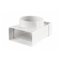 Пластиковые плоские соединители c круглым выходом, расположенным по центру под углом 90°. Используются в системах вентиляции для разветвления линии воздуховодов. Плоские выходы соединяются напрямую с воздуховодами без помощи соединительных элементов, круглые с соединительными элементами. Устойчивы к коррозии. Температурный режим от - 40°С до +60°С.