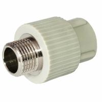 Комбинированная полипропиленовая муфта для соединения труб из полипропилена методом раструбной сварки с переходом на наружную резьбу 3/4". Назначение: обеспечивает переход с основной магистрали на 3/4" резьбу в системах водоснабжения и отопления.