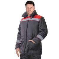 Куртка "СИРИУС-БРИГАДИР" мужская с мех. ворот. Т-серая с красным и СОП р.128-132/182-188 (ЧЗ)