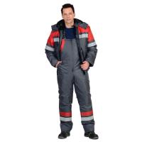 Костюм "СИРИУС-Орбита" зимний: куртка кор.,п/комб. серый с красным и СОП р. 88-92/182-188 (ЧЗ)