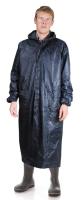 Плащ влагозащитный. Нейлон с ПВХ (100% полиэстер + 0,18мм ПВХ). Плащ с центральной застежкой на молнию и кнопки, с дополнительной ветрозащитной планкой. Воротник отложной, с капюшоном (убирается в воротник - застежка молния). Рукава втачные, с внутренними манжетами. Все швы проклеены.