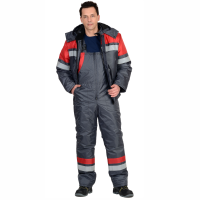 Костюм "СИРИУС-Орбита" зимний: куртка кор.,п/комб. серый с красным и СОП р. 88-92/170-176