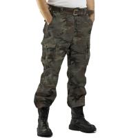 - боковые карманы с отрезным бочком, два накладных объемных кармана с клапаном, застегивающимся на пуговицу, по боковым швам и на задних половинках брюк