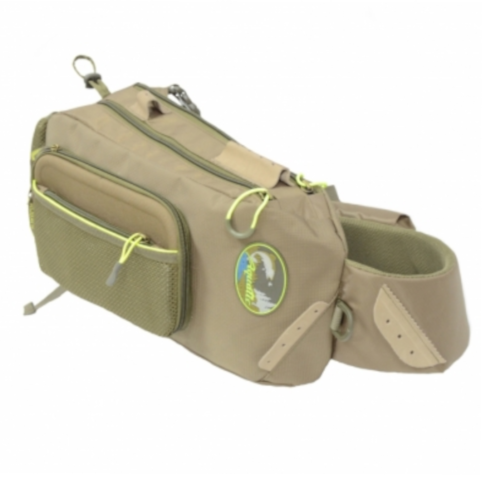 2 отделения, 4 дополнительных кармана, многочисленные точки крепления для инструментов и рыболовных аксессуаров, D-образное кольцо, карабин для крепления аксессуаров, карман на молнии для мобильных устройств, фонаря.