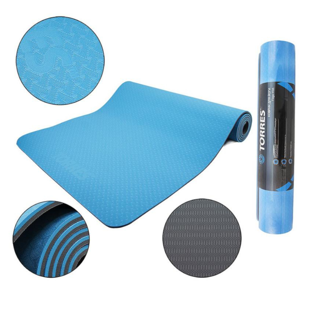 Коврик для йоги "TORRES Comfort 6" арт.YL10086, TPE 6 мм, нескользящее покрытие, сине-серый