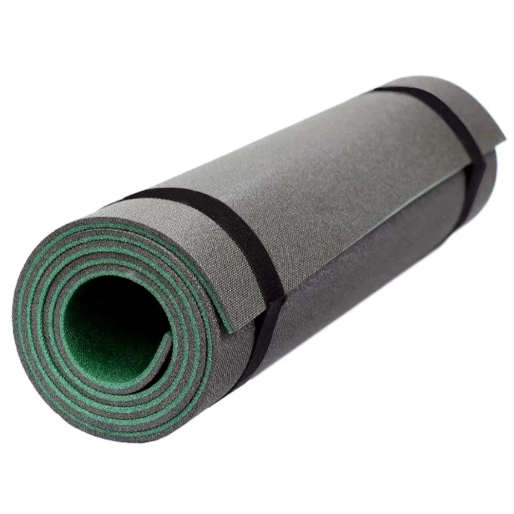 Коврик изготавливается из двух склеенных листов вспененного полиэтилена общей толщиной 8 мм. По сравнению с однослойным данный коврик обладает лучшими термоизоляционными свойствами, что позволяет использовать его как сидение или подложку для обустройства спального места в туристическом походе. Упругий эластичный коврик сохраняет форму при нагрузках и не деформируется. Рифленая поверхность не дает коврику скользить даже на мокрых поверхностях. Нижний слой более плотный, обеспечивает надежное сцепление коврика с поверхностью; верхний – мягкий, делает коврик комфортным местом отдыха. В комплект входят две резинки, удерживающие коврик в скрученном состоянии.