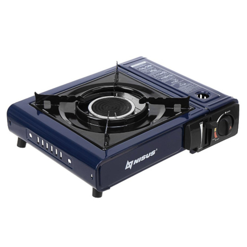Плита газовая портат. в кейсе, горелка керамическая, с переходником (N-BDZ-155C-B) NISUS предназначена для приготовления пищи или кипячения воды на пикнике, в походе, на дачном участке, во время отдыха на природе или в дальней дороге. Плита очень легка и удобна в использовании. Работает как от стандартного одноразового газового баллона, который размещается внутри плиты, так и от бытового баллона (5-50 л.), который подсоединяется шлангом.