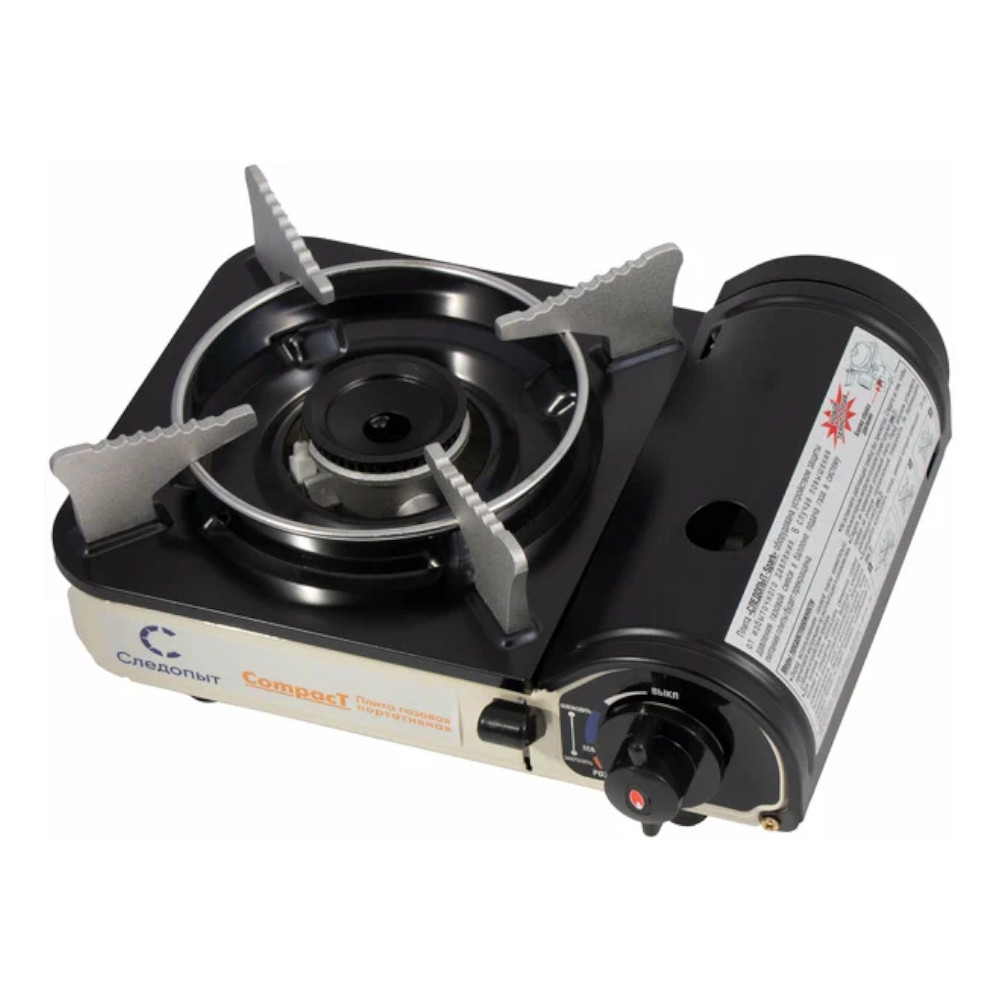 Плита наст. газовая "СЛЕДОПЫТ - Compact" (защита от избыточного давления)/8/ предназначена для разогрева и приготовления пищи в условии удаленности от центрального источника газоснабжения (на пикниках, кемпингах, в частных домах и пр.). Работает от стандартного цангового одноразового баллона, который размещается внутри плиты.