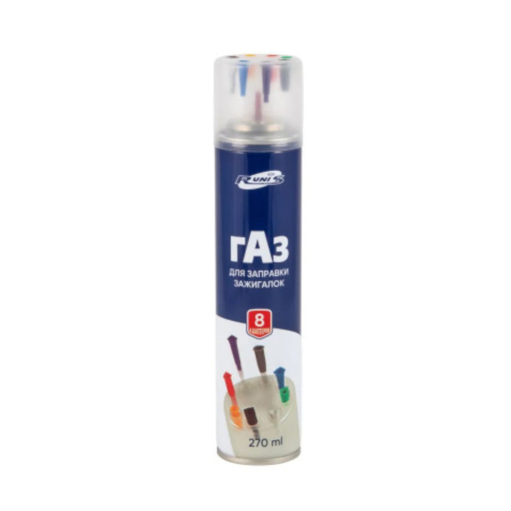 Газ для зажигалок "RUNIS" Premium, метал. баллон, 270мл. (с переходником). предназначен для заправки зажигалок, работающих на газе.