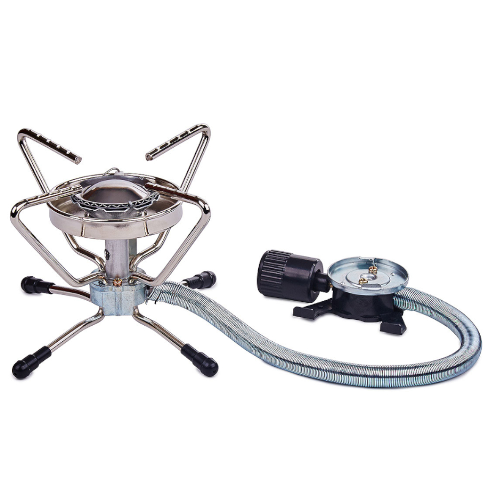 Мини плита в пластиковом кейсе с пьезо элементом на выносном шланге. Использование шланга повышает безопасность, а также удобство при эксплуатации. При низких температурах есть возможность поместить баллон в более теплое место для подогрева газа (например, спальный мешок).