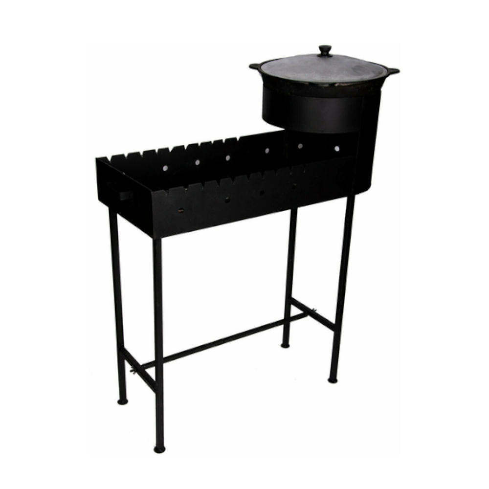 Мангал с печью под казан 2в1. Мангал на 10 шампуров. Очаг под казан 12 л. Характеристики мангала: высота мангала без казана 105 см, высота мангала с очагом под казан - 115 см, длина ножек - 73 см, разборные ножки, толщина метала мангала 3 мм.