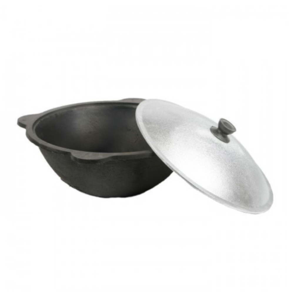 Узбекский казан предназначен для приготовления на открытом огне. Материал чугун. Толщина стенки 7-10 мм. В таком казане еда не пригорает. Алюминиевая крышка в комплекте. Узбекский чугунный казан медленно нагревается и также медленно остывает, что позволяет блюду сохраняться горячим продолжительное время. Очень важно перед первым использованием правильно провести обжиг казана от технической смазки.