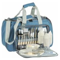 Сумка с набором для пикника на 4 персоны и с легкомоющимся термоотделением для продуктов, объемом 20л. Двойные ручки и регулируемый по длине наплечный ремень.