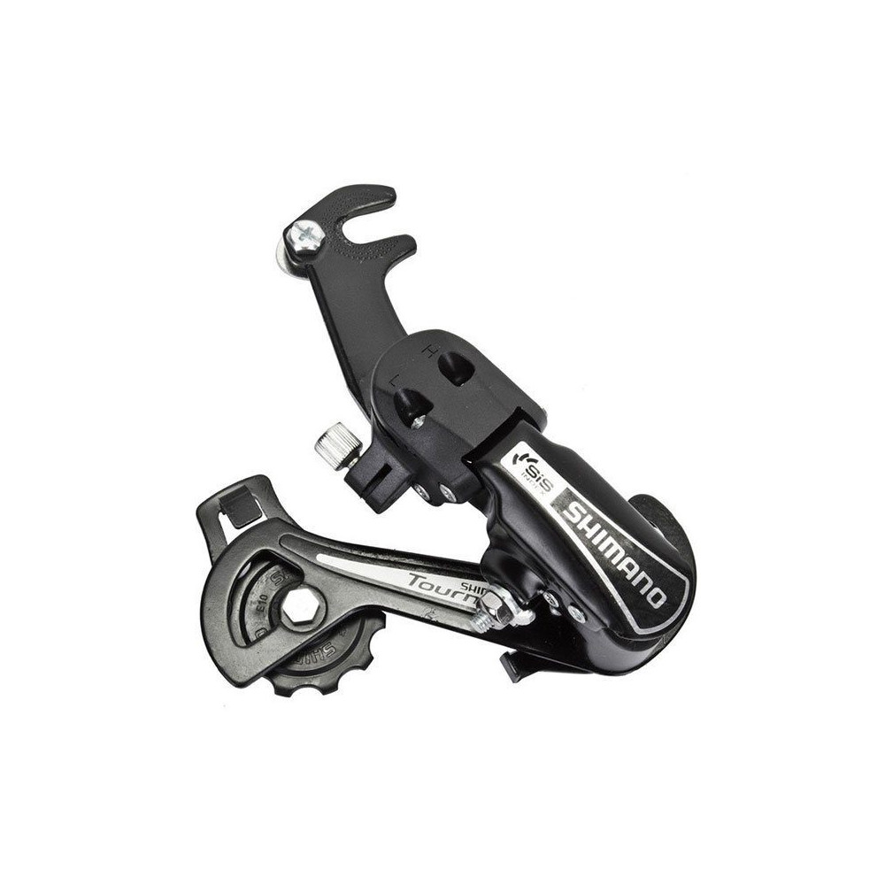 Работа переключателя рассчитана на прогулочное или туристическое пользование и ресурс работает с 6-скоростной кассетой или трещоткой. Вариант GS/SS, резьбовой крепеж, подходит для стандартного и обратного дропаутов. Конструкция с двойным натяжением. Долговечный и менее шумный 11-зубовый ролик. Количество скоростей: 6. Крепление: на болт.