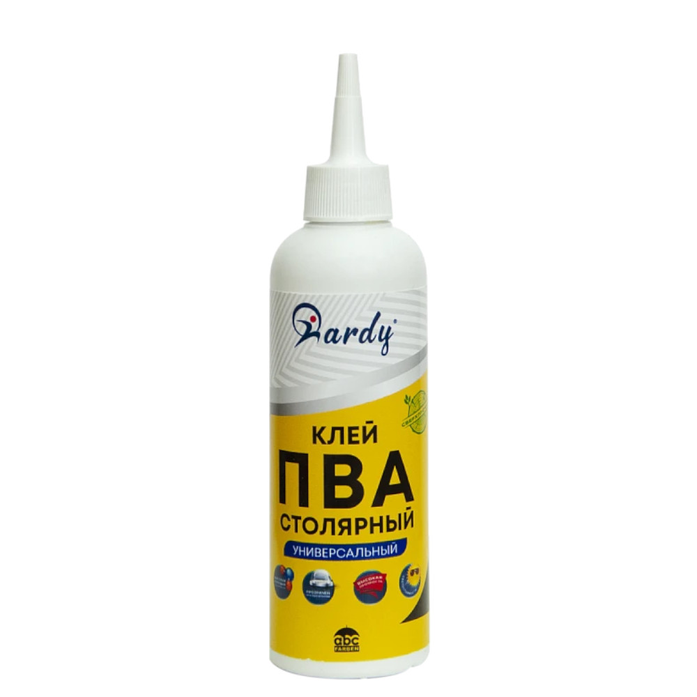 Клей ПВА столярный сверхпрочный универсальный (500мл) HARDY обладает широкой сферой применения: применяется для склеивания деревянных поверхностей, ДСП,ДВП,МДФ, фанеры, шпона, бумаги, плотного картона, виниловых и бумажных обоев; фарфора, керамики и др. материалов, а также в качестве добавки в цементные растворы при работе с кафельной и керамической плиткой. Клей обладает высокой прочностью склеивания и оптимальным временем схватывания. После высыхания образует эластичную прочную прозрачную пленку. Расход 80-200 г/м2. Клей обладает высокой прочностью склеивания и оптимальным временем схватывания.