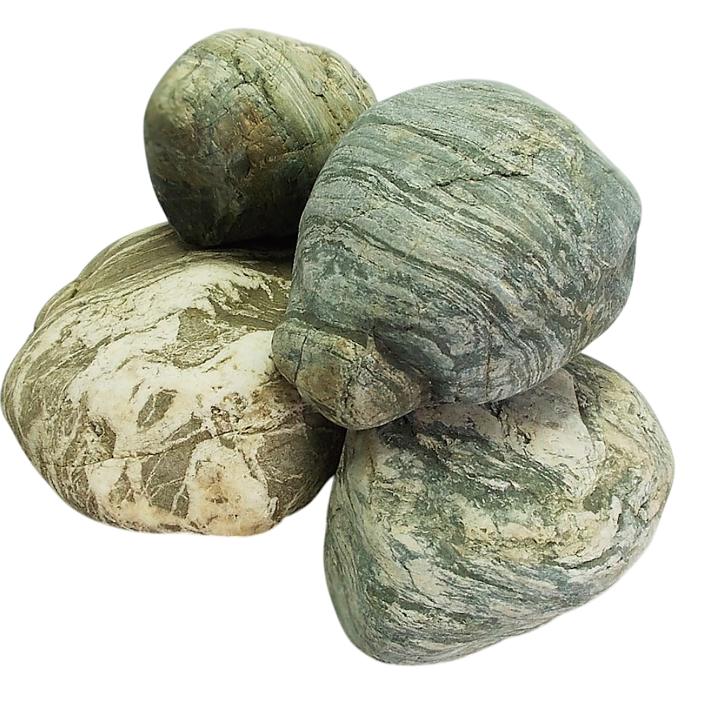 Булыжник из изверженных горных пород. Камень добывают в Осетии. Так как камень окатывается горными реками, его поверхность очень чистая и цвет камня, что внутри, что снаружи - одинаков. Это значительно повышает его эстетическое восприятие и расширяет возможность использования камня. Цвет - светло-серый, белый, зеленый, серый, иногда пестрый. Форма - эллипсоиды неправильной формы. Фактура - шероховатая.
