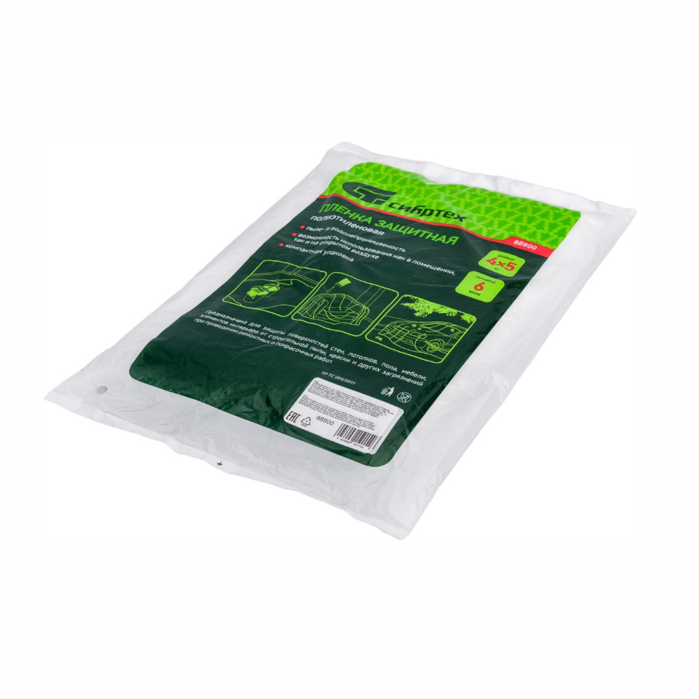 Пленка защитная 4х5 м, 6 мкм СИБРТЕХ 88800 используется для защиты предметов интерьера, машин, дверей, пола, стен от пыли, грази, краски, химических растворов и т.д. Обладает свойствами водо- и пыленепроницаемости.