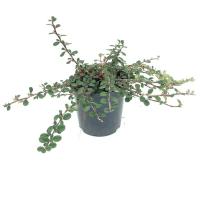 Кизильник горизонтальный. Это вечнозеленый кустарник высотой до 50 см, с горизонтально распростертыми, почти прижатыми к земле перисто-ветвистыми побегами, расположенными в одной плоскости. Замечательны его мелкие, почти округлые, до 1,5 см, темно-зеленые листья, пурпуровые осенью. Растет быстро и сильно разрастается вширь, диаметр кроны более 1 м. Один из изящнейших видов.