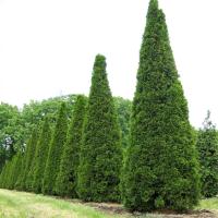 Саженцы туи западной Смарагд (Smaragd) – отлично приспосабливаются к особенностям места произрастания. Крупномеры представлены среднерослыми деревьями с пирамидальной плотной кроной. В любое время года от этой туи трудно отвести взгляд: яркая зеленая хвоя постоянно сохраняет насыщенный цвет. Достоинства сорта: