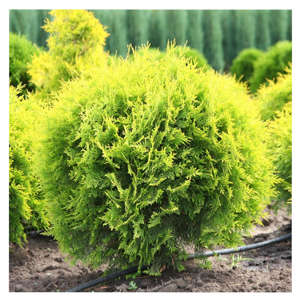 Саженцы туи западной Голден Глоб (Golden Globe) великолепно вписываются в небольшие палисадники, цветочные композиции. Ими также можно украсить свою террасу, высадив в контейнер. Это карликовая туя овальной формы. Осенью меняет свой окрас на медный, а весной вновь покрывается золотистым оттенком. Растёт не быстро, достигает 60-80см в высоту и ширину. Не любит засуху и требует регулярного полива, особенно в первые месяцы. Морозостойкая и не боится снега. Почву желательно рыхлить и мульчировать. Качественные здоровые крупномеры Golden Globe - незаменимые помощники садовому декоратору. Высота до см : 40-60. Диаметр до см : 80-100. Изображения товаров на фотографиях, представленных на сайте, могут незначительно отличаться от оригиналов.