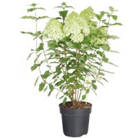 Гортензия метельчатая Пандора (Hydrangea paniculata Pandora) - новый сорт гортензии метельчатой из серии Pan. Серия Pan включает сорта «Pandora», «Panzola», «Pandria» и «Panflora». Отличается компактной формой и ранним цветением. Округлый, пышный куст, с ароматными цветками, практически не требуют формировки и обрезки, обильно цветёт, хорошо разветвлённый, высотой 100-150 см. Соцветия широко конические, очень полные метелки, длиной 15-20 см, более широкие и более плотные, чем у сорта «Limelight». Цветение раннее, в июне-августе, на 3 недели раньше, чем у сорта «Limelight». Примечательна листва такой гортензии. Она удлинена и отличается легкой зазубренностью. Цветки светло-зеленого или лимонно-белого окраса. С наступлением осени они приобретают пурпурно-зеленый цвет, отличающийся мягким отливом. Цветение июнь - сентябрь.