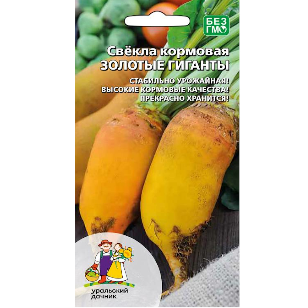 Свекла Золотые гиганты - стабильно урожайный сорт кормовой свеклы для хранения. Корнеплоды удлинённо-овальной формы, желтые, массой до 1,2 кг, очень сочные. Характеризуется высоким содержанием сухого вещества и сахарозы, быстрым нарастанием зелёной массы и развитием корнеплода.