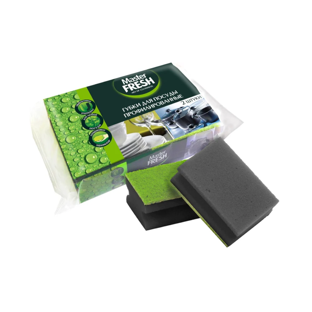 ГУБКИ ДЛЯ ПОСУДЫ ПРОФИЛ. УПАК. 2 ШТ. (1/50) "MASTER FRESH" профилированные подходят для всех видов поверхностей, отлично впитывают воду и обильно пенятся. Губки прослужат долго благодаря поролону высокой плотности, качественному абразивному слою и суперпрочной склейке слоев.