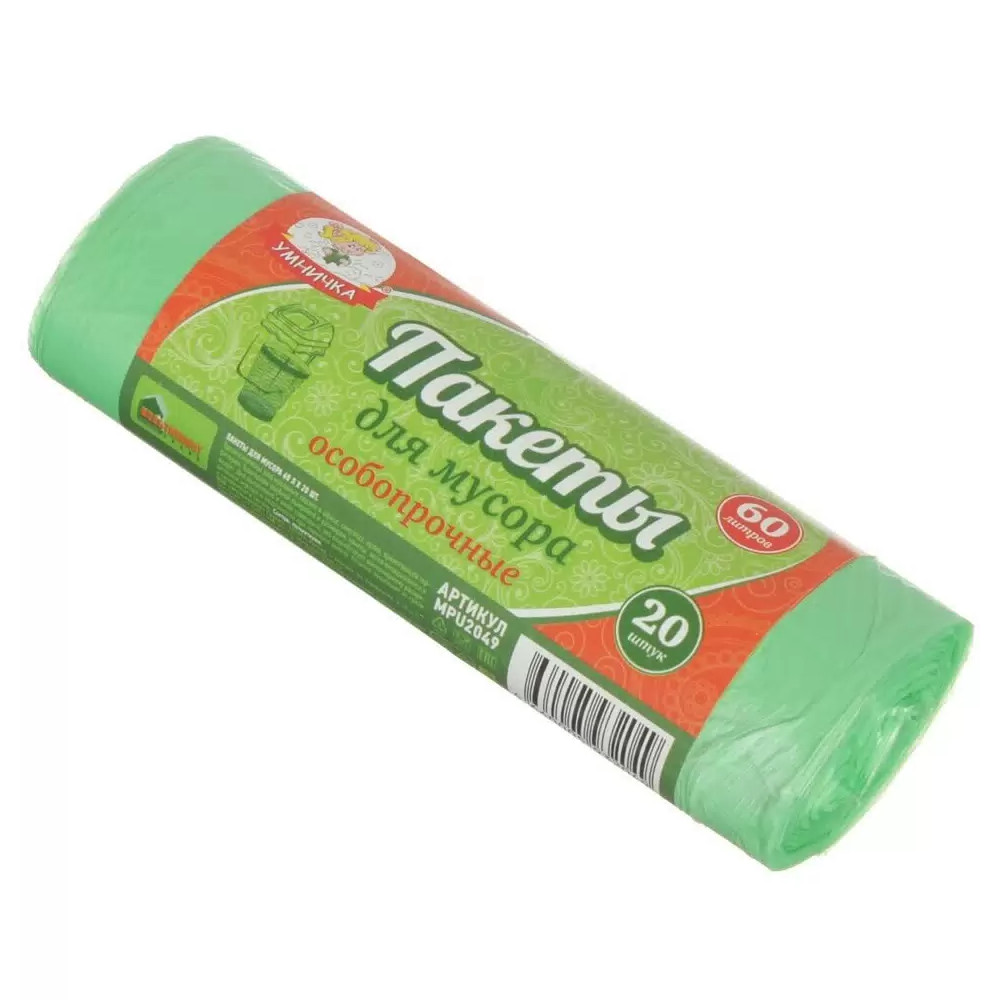 Пакеты для мусора 60л, 20шт, 8мкм, особопроч.,Умничка,MPU2049