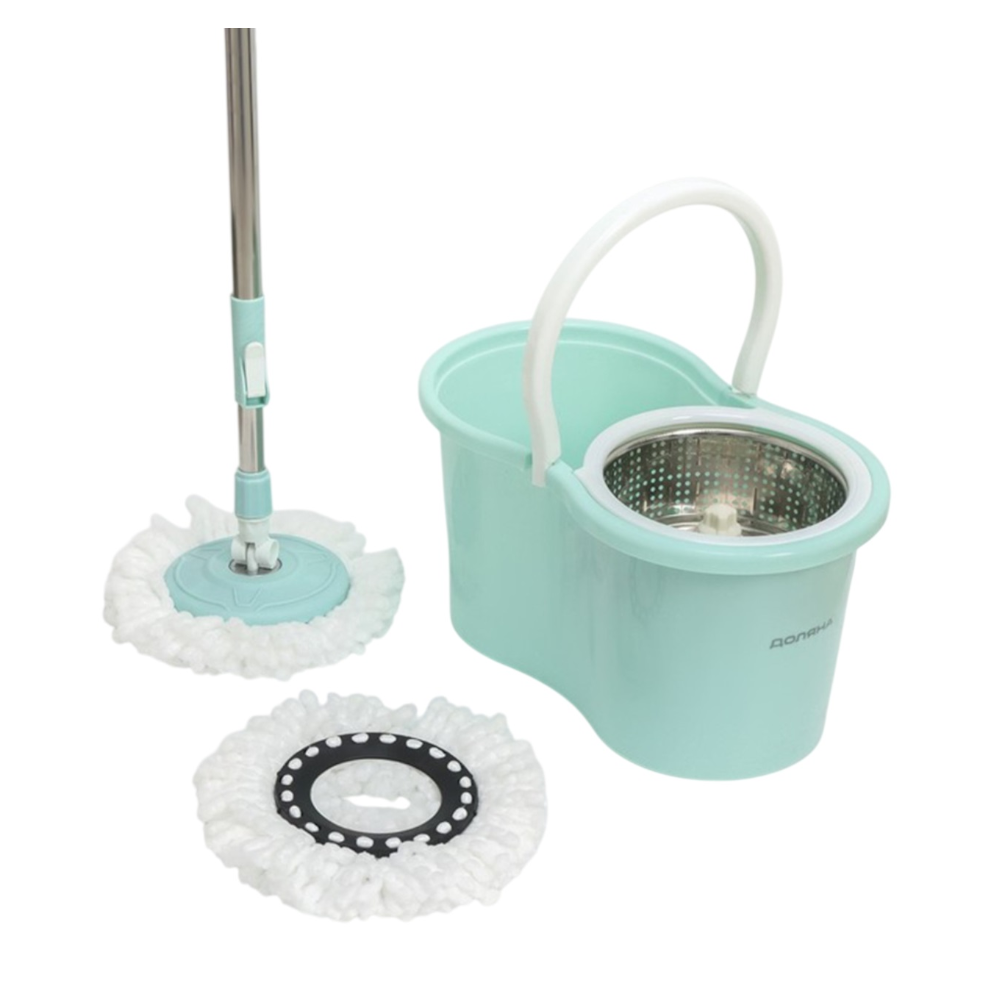 Ведро объемом 14 литров оснащено металлической центрифугой, которая эффективно отжимает воду без необходимости контактировать с грязной водой. Вы можете легко контролировать уровень влажности моющей части за счет количества вращений.