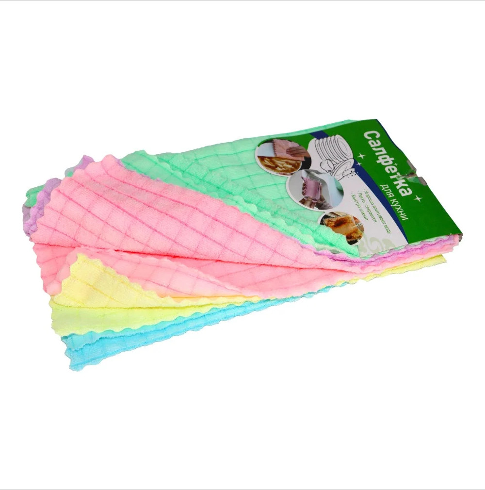 Салфетка для уборки 30см*30см 5шт/уп BJ-16108 предназначена для удаления пыли и грязи с любых поверхностей, чистка стёкол, кафеля, сантехники, хромированных поверхностей и т. д