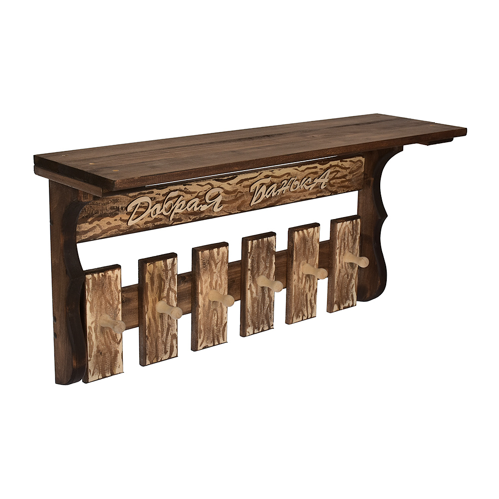 Полка с вешалкой "Добрая банька", 6 рожков, состаренная, 77х35х21 см, липа "Банные штучки" в кор./1