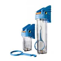 Корпус для картриджного фильтра Джилекс 20 1 М С 9072 выполнен из прочного пластика и оснащен прозрачной колбой. Изделие подключается к водопроводу для очистки воды. Корпус используется совместно с картриджами размером 20 BIG BLUE.