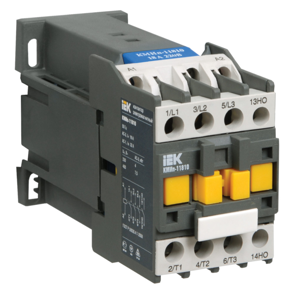 Контактор КМИ малогабаритный 9А кат ушка управления 230В АС 1НО предназначен для пуска, остановки и реверсирования асинхронных электродвигателей с короткозамкнутым ротором на напряжение до 660 В (категория применения АС-3), а также для дистанционного управления цепями освещения, нагревательными цепями и различными малоиндуктивными нагрузками (категория применения АС-1). Все исполнения на ток нагрузки до 40 А имеют одну группу замыкающих или размыкающих дополнительных контактов. Исполнения на ток нагрузки свыше 40 А - две группы (замыкающую и размыкающую).