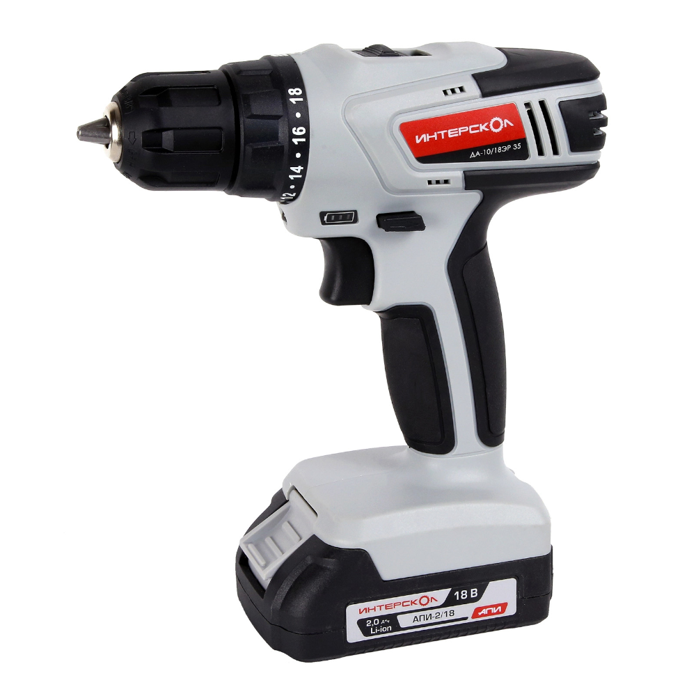 Двухскоростная аккумуляторная дрель-шуруповерт ИНТЕРСКОЛ ДА-10/18ЭР 35 комплектуется высококачественными литийионными (Li-ion) аккумуляторными батареями единой универсальной платформы АПИ 18 В слайдерного (сдвижного) типа, характеризующимися высокой энергоемкостью, практическим отсутствием саморазряда и эффекта памяти. Это позволяет сразу же приступить к работе даже после продолжительного хранения (аккумуляторы сохраняют заряд на протяжении долгого времени), а при необходимости в любой момент поставить батарею на подзарядку. Модель демонстрирует отличный баланс между емкостью аккумулятора и мощностью двигателя, размерами и массой, удобством и эффективностью. Эргономичная рукоятка с противоскользящим резиновым покрытием отлично ложится в руку, обеспечивая уверенное и надежное удержание инструмента в процессе работы при выполнении любых операций.