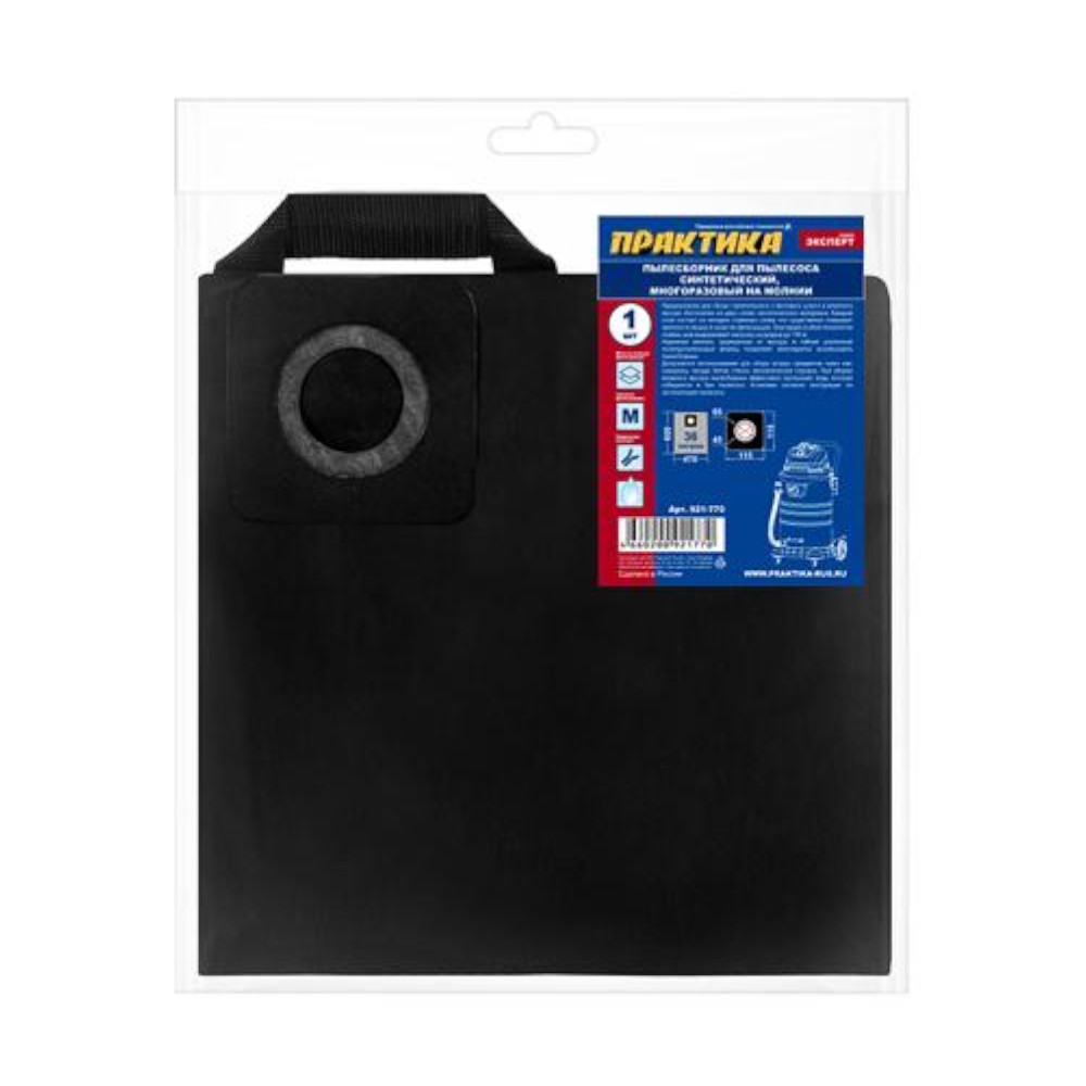 Многоразовый синтетический мешок позволяет не беспокоится о запасе пылесборников, особенно это актуально в случаях редкого и эпизодического использования пылесоса. Хорошо выдерживает многократные циклы использования. Молния дополнительно защищена от мусора, фланец усилен.