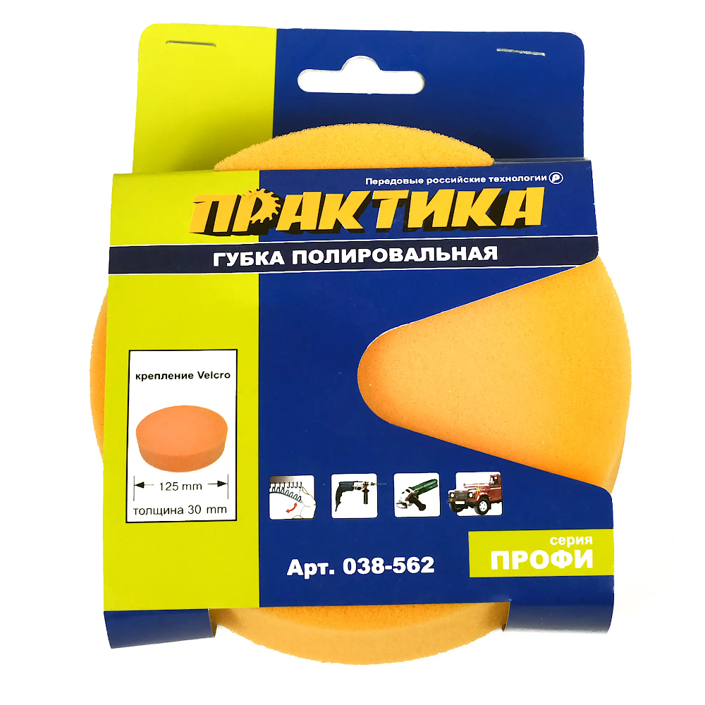 Губка поролоновая Практика Профи 038-562 125 мм, полировальная, толщина 30 мм, крепление Velcro - предназначена для полировки, шлифования деревянных, металлических, пластмассовых и других поверхностей и их подготовки для дальнейшей обработки. Губки представляют собой вспененный полиуретан или специальный поролон с особой, тонкой, эластичной пленкой, на которой крепится абразив. Шлифовальные губки широко используются в мебельной и автомобильной промышленности.