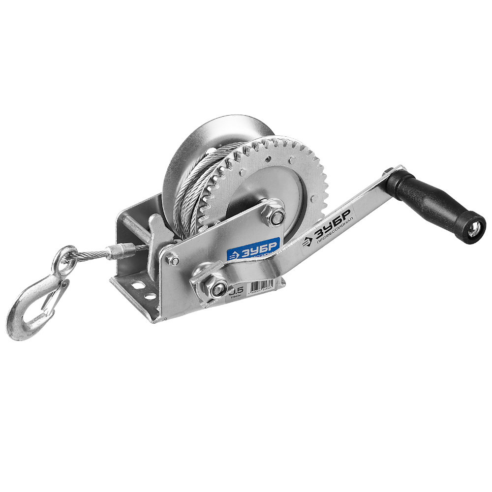 Лебедка ручная барабанная ЗУБР "ПРОФЕССИОНАЛ", тяговая, тросовая - устройство для работы на строительных площадках. Не требует дополнительного питания или других вспомогательных приборов. Возможность безопасно не только передвигать груз, но и работать в вертикальной плоскости делает лебедку отличным универсальным устройством для перемещения грузов.