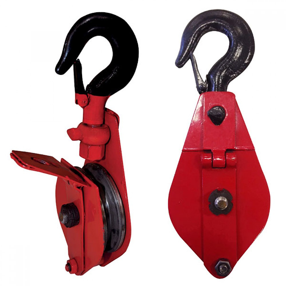 Блок с крюком HQGK 1-1 (1 ролик, 1т) применяется в такелажных и монтажных операциях в роли промежуточного звена между грузоподъемной машиной и грузом. Основной задачей блока является снижение усилия, необходимого для подъема тяжеловесных грузов. Конструкцией предусмотрен захватный элемент в виде крюка с замком, откидная щека для удобства запасовки каната и оборотный ролик на подшипнике.