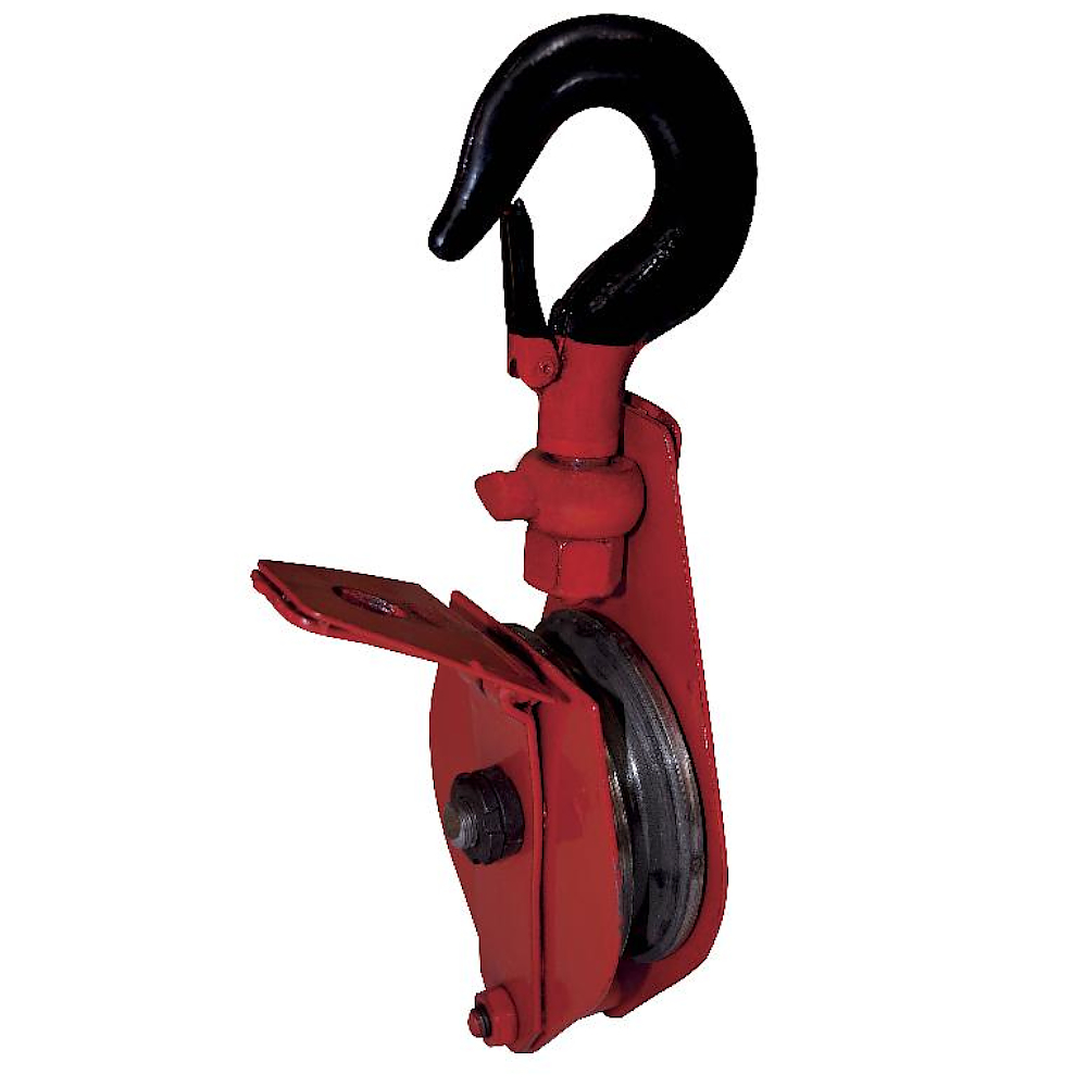 Блок с крюком HQGK 1-2 применяется в такелажных и монтажных операциях в роли промежуточного звена между грузоподъемной машиной и грузом. Основной задачей блока является снижение усилия, необходимого для подъема тяжеловесных грузов. Конструкцией предусмотрен захватный элемент в виде крюка с замком, откидная щека для удобства запасовки каната и оборотный ролик на подшипнике.