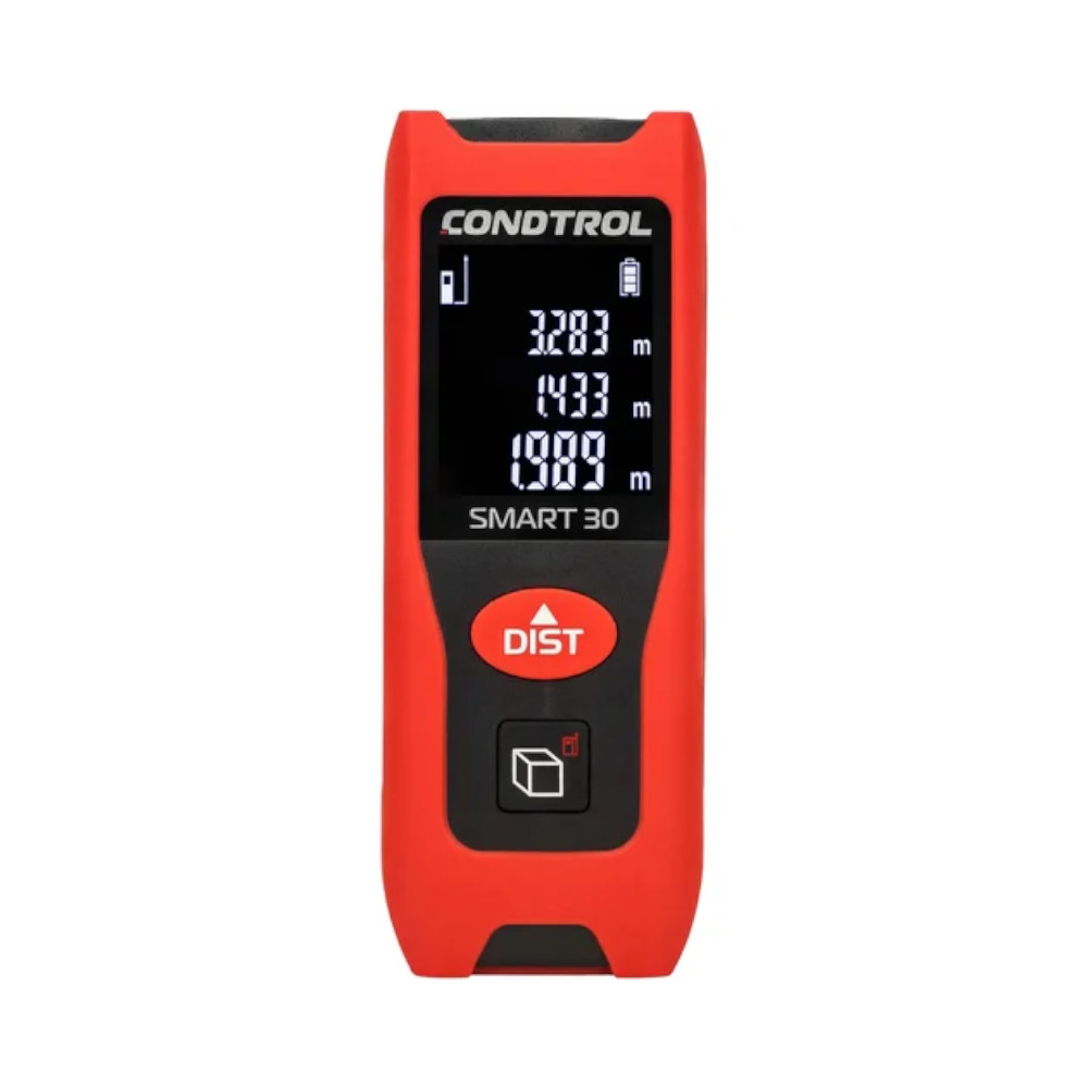 Лазерный дальномер CONDTROL Smart 30 - это простое и надёжное решение для всех, кто выполняет точные измерения дома, в мастерской или на даче. Прибор сочетает удобство бытового использования с возможностями, которые встречаются в профессиональных моделях. Несмотря на компактные размеры, Smart 30 позволяет измерять расстояния до 30 метров, вычислять площадь, объём, а также использовать функцию Пифагора для косвенных замеров.