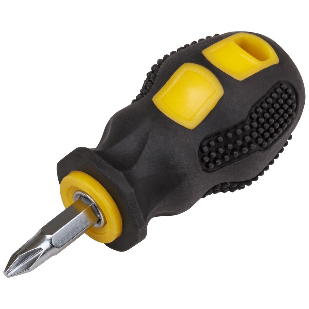 Отвертка c переставным жалом "коротыш", CrV сталь, прорезиненная ручка 6х25 мм PH2/SL6, шоу-бокс представляет собой удобный инструмент, который всегда можно держать под рукой.