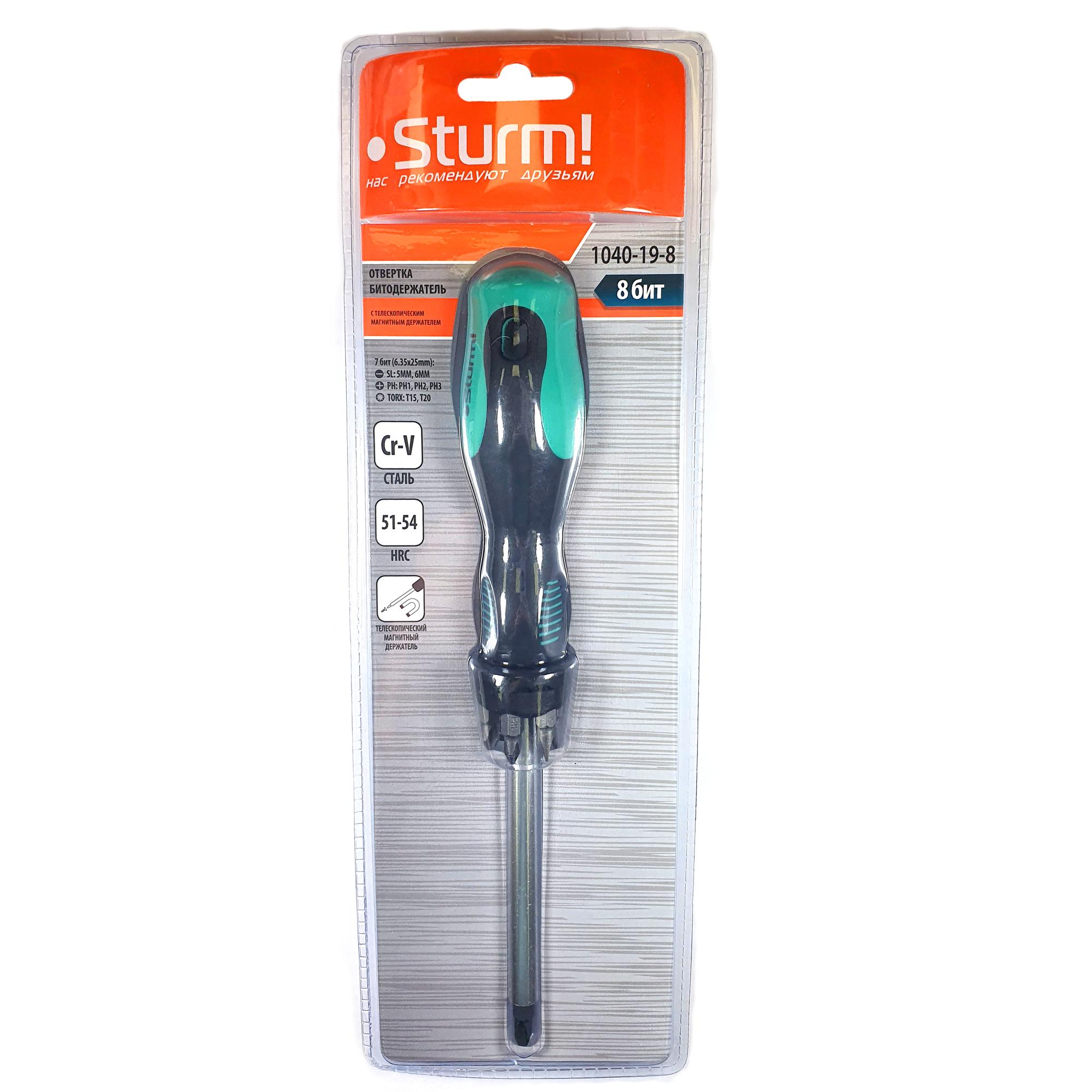Отвертка-битодержатель с телескопическ. магнитным держателем 8 в 1 Sturm!.