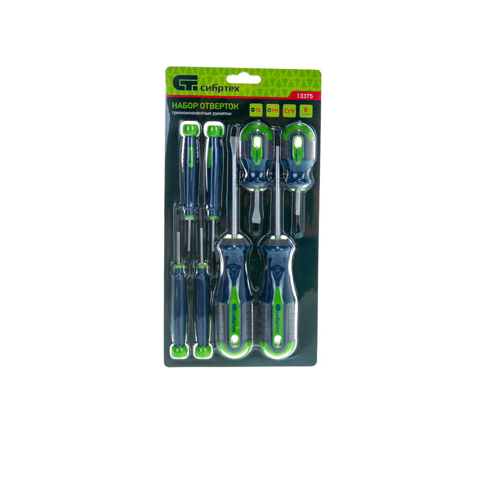 Набор отверток, CrV, трехкомпонентные рукоятки, 8 предм//Сибртех