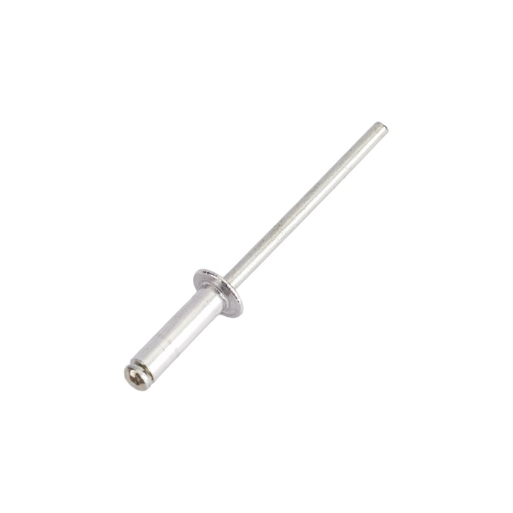 Заклепка вытяжная, алюминий/сталь 3,2х12 предназначена для соединения листового материала и требует наличия доступа к рабочей поверхности только с одной из сторон. Монтаж заклёпок производится в просверленное отверстие при помощи специального инструмента. Изготавливаются из стали, алюминия, медных сплавов, полиамида. Комбинированные модели считаются самым распространённым видом. Метизы способны обеспечивать неразъёмное соединение особо твёрдых деталей, подвергающихся механическим, весовым и вибрационным нагрузкам.