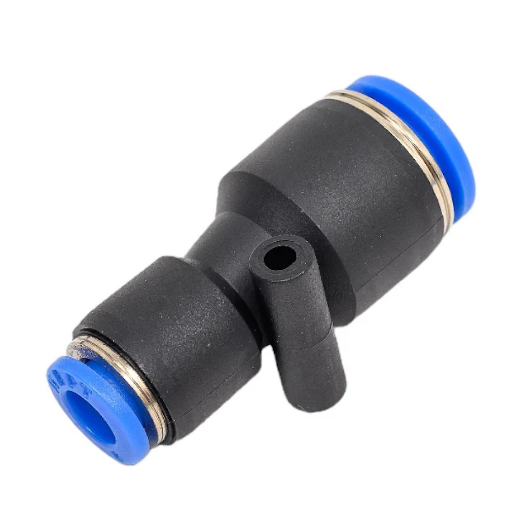 Данный пневмофитинг изготовлен из конструкционного пластика PBT(Полибутилентерефталат), что делает его прочнее, а так же увеличивает срок службы, по сравнению с аналогами из обычного ПВХ пластика.