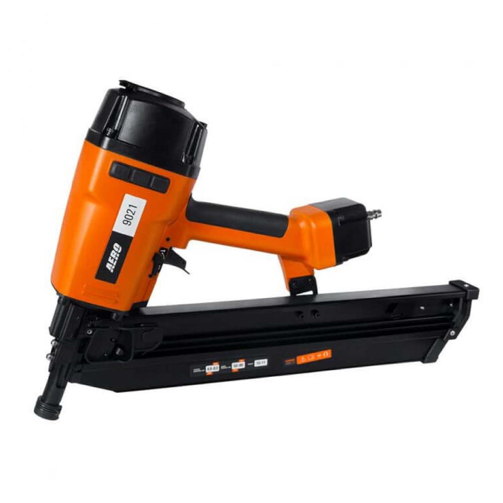 AERO 9021 - мощный профессиональный инструмент для надежного забивания гвоздей в любую породу дерева. Основное применение реечных гвоздезабивных пистолетов - это каркасные работы по дереву. данный вид инструмента широко применяется при строительстве деревянных домов и прочих конструкций из дерева: каркасов крыши и пола, обрешётки крупногабаритных грузов, а также в промышленных целях.