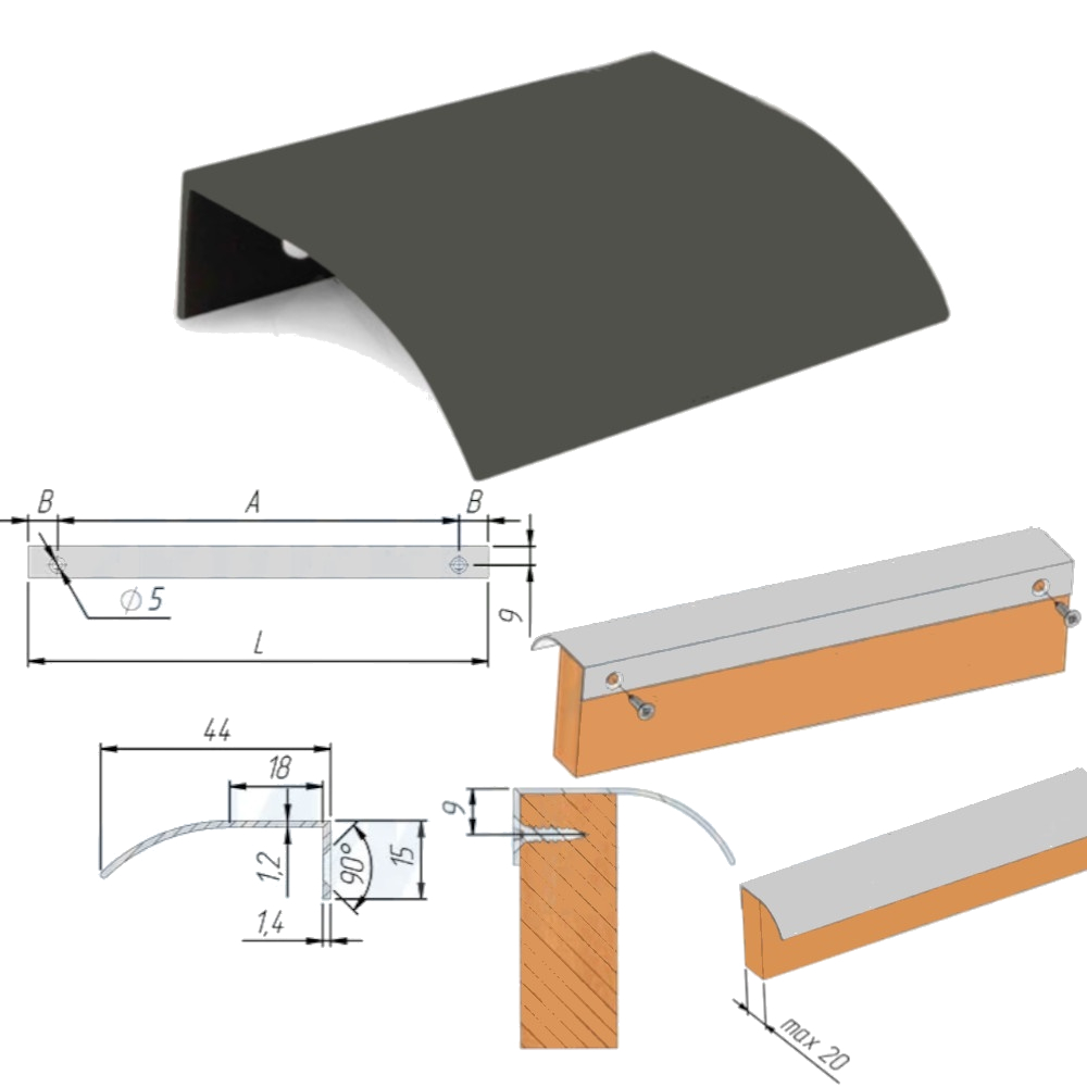 Профиль-ручка 32мм крепление саморезами черный матовый
