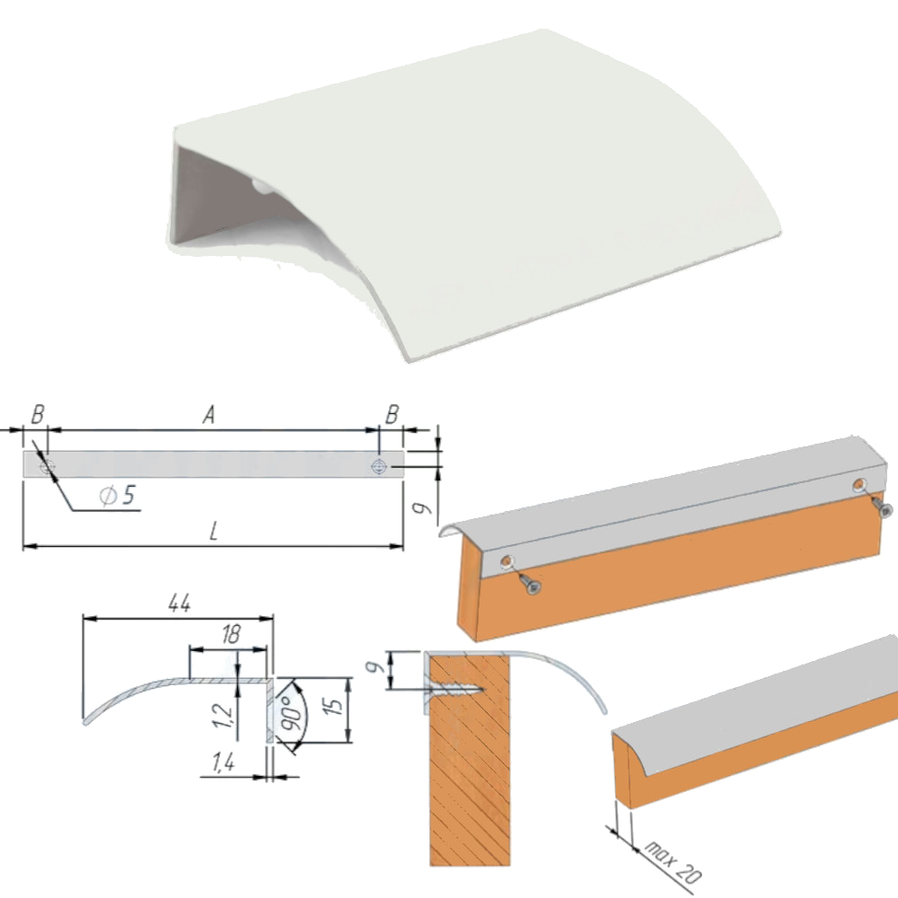 Профиль-ручка 32мм крепление саморезами алюминий матовый